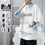 半袖パーカー メンズ 七分袖 パーカー 薄手 英語柄 絞り染め 切り替え フード付き おしゃれ カジュアル 涼しい