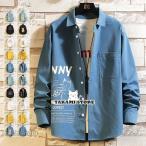 長袖シャツ メンズ カジュアルシャツ シャツ 韓国風 猫柄 クマ柄 花柄 英語柄 落書き プリント 太め 大きいサイズ