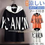 半袖パーカー メンズ パーカー 夏 半袖 薄手 英語柄 フード付き おしゃれ カジュアル 涼しい スポーツ 新作 ゆったり 大きいサイズ
