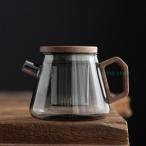 ガラスポット 耐熱ガラス 茶器 ティーポット 600ml 透明 直火電気ケトル対応 竹製ハンドル ガラスフィルター ティーフォーツー