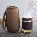 水筒 ガラスボトル ティーセット シンプル 和風 家庭用 トラベル 茶こし付 分離式水筒 男女兼用 贈り物 直飲み 漏れ防止 390ml ブラウン グレー