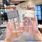 クリアボトル ガラス水筒 ウォーターボトル ステンレス茶こし 運動用 ダブルウォール 直飲み クリア タンブラー 蓋付き クラシック 車載