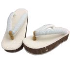 草履 ぞうり きなり濃茶台 淡水色地鼻緒 フリー 24cm 着物 小紋 紬 カジュアル 女性用 単品