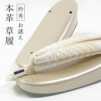 草履 レディース フォーマル 本革 お誂え クリームベージュ 鱗文 一枚芯 メタリック加工 プチ小判型 衿秀 刺繍鼻緒 日本製