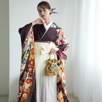 袴 セット 卒業式 女性 4点セット「二尺袖:牡丹に桜 こげ茶×ココア+刺繍袴:アンティークブラウン+袴下帯:白+襦袢」卒業式 女性 レディース (メール便不可)