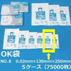 ポリ袋(OK袋)【 NO.8 】0.02mm×130mm×250mm 75000枚(5ケース )【 送料無料 】【 規格袋 】【 業務用 】【 国内産 】【 ビニール袋 】【 ポリエチレン袋 】【 大倉 】【 菓子パン パン ドーナッツ 】