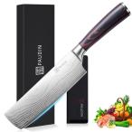 Sunnecko 菜切り包丁 180mm 高炭素ステンレス 鞘付き 料理 切れる 両刃 左利き対応 防錆 薄刃 野菜 ダマスカス模様 おしゃれ プレゼ