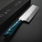 包丁 菜切り 165mm 菜切 佐治打刃物 槌目 SRS13 粉末ハイス鋼 ブルーターコイズ柄 佐治武士 日本製 越前打刃物