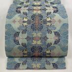 美品 袋帯 逸品 龍村晋 落款あり 葡萄唐草 箔 青灰色 全通 正絹 中古
