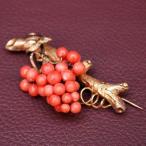 アンティーク コーラル ゴールド 葡萄モチーフ ブローチ