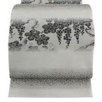 袋帯 秀品 紬地 葡萄 紗綾形 灰茶 全通 正絹 中古