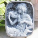 ドイツ Idar Oberstein産 良質ストーンカメオ ブラックメノウ SILVER ペンダントブローチ【繁栄の葡萄の実】