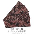 半幅帯 帯 本場筑前博多織 小袋帯 リバーシブル 正絹 黒 えんじ 葡萄 花草 レトロ Kissteオリジナル 協和織工場 日本製