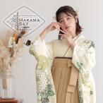 袴 セット 卒業式 女性 4点セット「二尺袖:鳥の子色 菊に鞠+袴:ミルクティー 葡萄+袴下帯:なみなみ ブラウン×ベージュ+襦袢」S/M/L/LL (メール便不可)