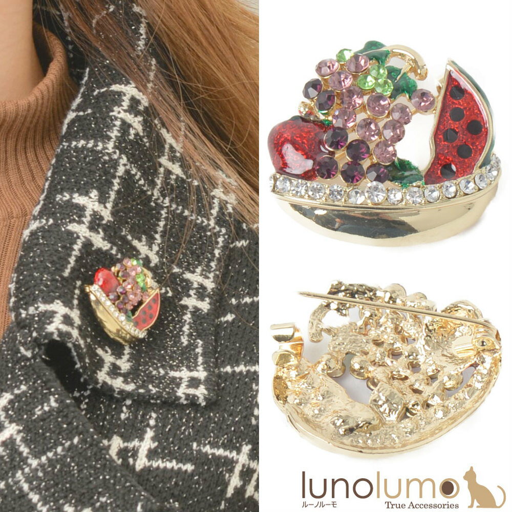 【50%OFF 楽天スーパーSALE】ブローチ レディース ゴールド 果物 くだもの フルーツ りんご リンゴ スイカ ぶどう ブドウ B