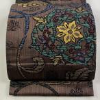 美品 袋帯 名品 華文 葡萄唐草 箔 金糸 焦茶色 六通 正絹 中古