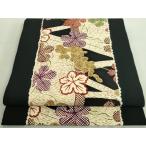 平和屋本店■極上 摺型友禅 京都 多ち花 九寸開き名古屋帯 葡萄蔦の葉文 黒地 逸品 DZAA8775kh5
