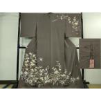平和屋本店●極上 京加賀友禅 百貫石峰 訪問着 草花文 葡萄鼠色地 逸品 DZAB4036kh6