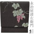 名古屋帯 未使用 正絹 九寸 永治屋清左衛門 永井織物 濃グレー 葡萄 唐織 お洒落 美品 カジュアル 新古品 仕立て上がり みやがわ sb55212