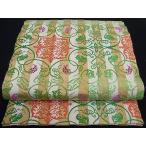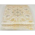 \30%OFF+P2倍★決算SALE/ 染名古屋帯 9寸名古屋 正絹 染帯 仕立て代込み 未仕立て 白 青 シダ 葡萄唐草 spo6438-iknb190