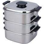 ◎桃印18-0ステンレス角型蒸し器 3段 27cm 2升用 二重 IH100/200V・ガス火対応 角蒸し器 電磁調理器 燕三条 日本製 549-10_ET 120サイズ