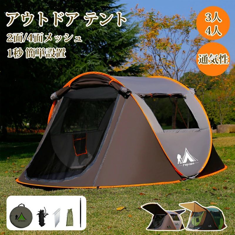 アウトドア テント 3人 4人 ワンタッチ テント ポップアップテント ダブルドア ワンタッチ ポップアップ テント キャンプ 通気性 2面 ダブルドア ファミリーキャンプ ベランピング 4面メッシュ 虫よけ 1秒 簡単設置