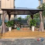 アウトドアガゼボ ハードトップ ポリカーボネート キャノピー ピークル 10×13フィート アルミフレーム&ネット付き 庭/パティオで日除けと虫対策を両立