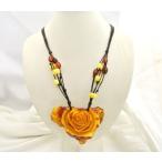 琥珀 コハク アンバー ネックレス 首飾り ミルキーアンバー 花彫り 革デザイン