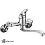 キッチン蛇口 壁付き 混合水栓 シングルレバー 浴室用水栓 バス水栓 180°首回り 泡沫吐水 ツーホール式 キッチン 水栓 冷 温 切り替え (20CM)