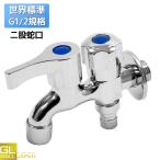 二股蛇口 洗濯機用水栓金具 おしゃれ 壁付け ワンホール 交換自分で 屋外 ガーデン 庭園 水栓柱用 単水栓 2ハンドル 二重出口 水道 二股水栓 洗面台 屋外