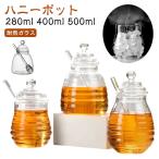 耐熱ガラス 蜂蜜 ハニーディスペンサー 蜂蜜入れ 蓋付き ガラス 攪拌棒付き かわいい 250ml 大容量 耐熱ガラス 透明 蜂蜜ボトル ハニーポット