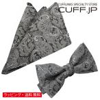 蝶ネクタイセット 蝶ネクタイ ポケットチーフ セット ペイズリー チャコールグレー