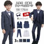 スーツ 5点セット 男の子 卒業式 子供スーツ チェック柄 超お得 長ズボン フォーマル フォーマルスーツ かっこいい シルエット