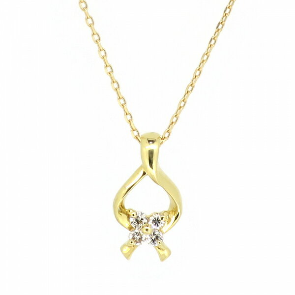 透かし ゴールドネックレス(チェーン付きペンダント) リボン 蝶ネクタイ ドロップ ティアドロップ 涙滴 しずく 18金 イエローゴールド ダイヤモンド ダイアモンド ジュエリー ネックレス ペンダント 首飾り レディース 女性 アクセサリー ギフト プレゼント おしゃれ