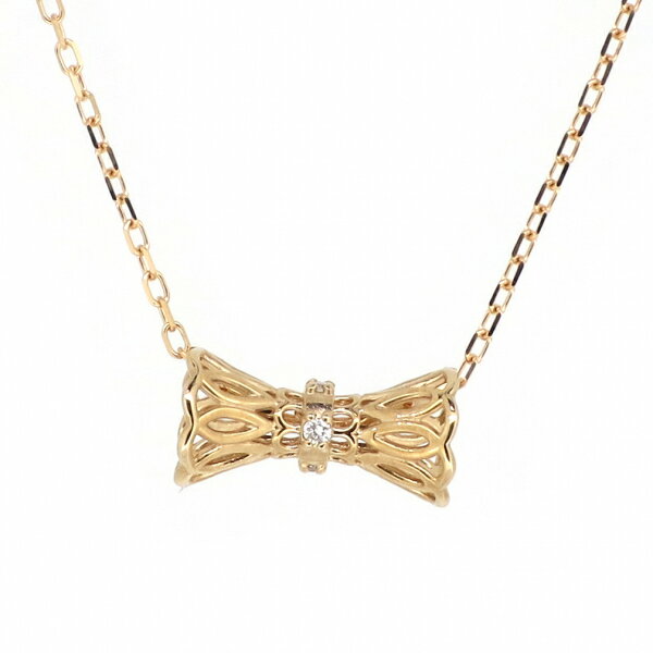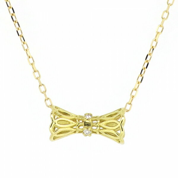 透かし ゴールドネックレス リボン 蝶ネクタイ 18金 イエローゴールド ダイヤモンド ダイアモンド ジュエリー