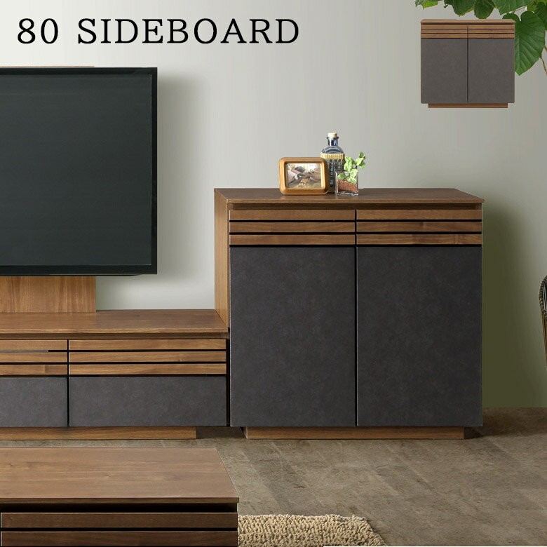 【SS価格&全商品に使える2%offクーポン配布中】 サイドボード サイドキャビネット 収納 おしゃれ 80cm幅 開き戸収納 サイドボード モダン 幅80 リビング ダンパー丁番 ゆっくり閉まる 木目 ウォールナット柄 抽象柄 配線孔