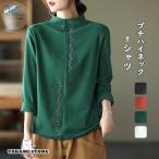 シャツブラウス 春 秋 レディース 無地 プチハイネック 長袖 プルオーバー トップス ブラウス Tシャツ ハイネック 長袖 体型カバー 刺繍 ゆったり カジュアル