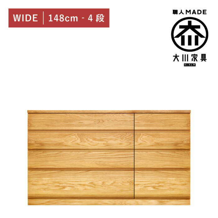 チェスト 完成品 タンス 幅150 4段 奥行44 ホワイトオーク 無垢 無垢材 木製 木 北欧 桐 衣類収納 引き出し リビング 収納 たんす 箪笥 婚礼 衣装ケース 桐タンス 桐チェスト 国産 日本製 大川家具 丸田木工 ミンクス