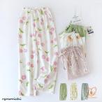 パジャマ ガーゼーパジャマ パンツだけ パジャマズボン レディース 寝ズボン 綿95% 可愛い花柄 ルームウェア ルームパンツ ロング丈 パンツ 寝間着 和風