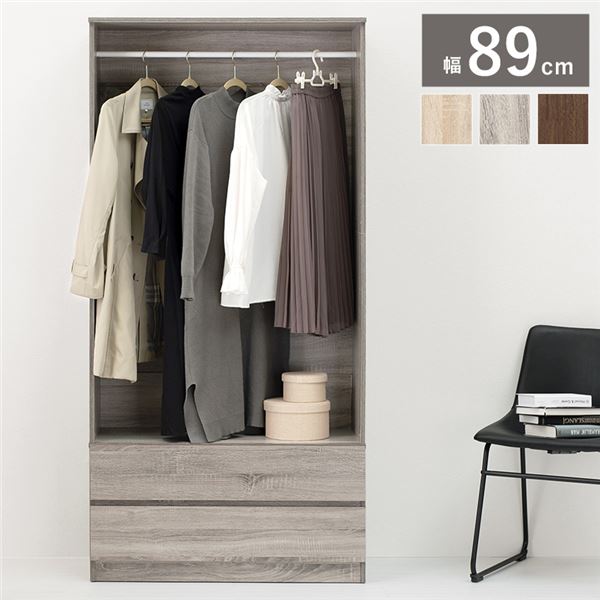 ワードローブ 89cm幅[グレー]ハンガーラック 衣類収納 ハンガー 引出し付き 木製 組立品