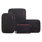 旅行用圧縮袋 衣類圧縮バッグ 圧縮袋 便利グッズ 圧縮ポーチ 両面収納トラベルポーチ 防水 大容量 旅行 出張(4個セット/ブラックレッド)