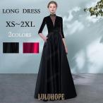 演奏会用ドレス ロングドレス 母親 結婚式 ドレス 大人 ピアノ 発表会 袖付き パーティードレス ロング ベルベット お呼ばれドレス のワンピース Aライン 7分袖