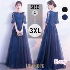 ドレス 大人 ピアノ 発表会 ロングドレス 母親 結婚式 ワンピース 黒 演奏会用ドレス 袖付き パーティードレス イブニングドレス ブラック ネイビー レース 舞