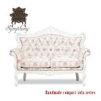 2人掛けソファ ラブソファ ロココ調 英国アンティーク調 ホワイト×スウィートローズ 花柄 布地 木製 猫脚 Symphony 1006-2-SH-18F116B