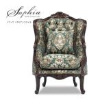 ソファ 1人掛けソファ ハイバック 一人用 アンティーク調 クッション付 ブラウンxグリーンダマスク 布地 猫脚 Sophia 1008-1W-5F102B