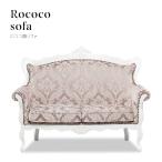 2人掛けソファ ラブソファ ダブル 二人用 アンティーク調 ロココ調 ホワイト×ピンクダマスク 布地 柄物 金華山 猫脚 木製 E1166-2-18F68