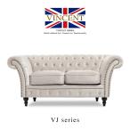 2人掛けソファ ラブソファ 2人用 チェスターフィールド 英国アンティーク調 ベージュベルベット 布地 エレガント 可愛い VINCENT VJ2F220K
