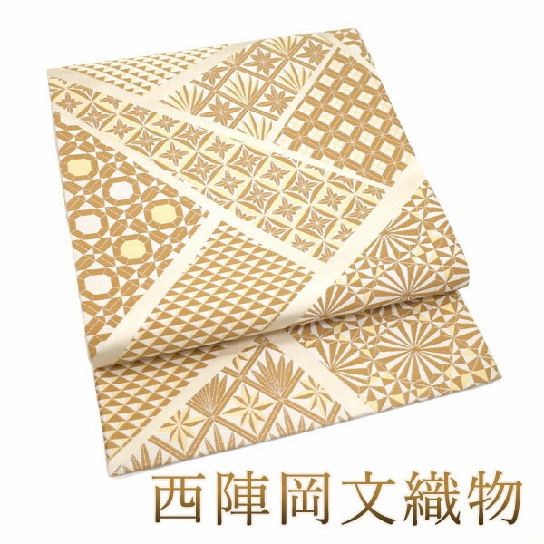 30%OFFで買えます¥27280→19096 【新古品】 袋帯 未使用 正絹 京都 西陣 岡文織物 ベージュ カーキ 切りばめ 切子 カジュアル 春 秋 冬 仕立て上がり みやがわ sb9793