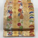 美品 袋帯 逸品 雪輪 松梅 金糸 ラメ糸 金色 六通 正絹 中古