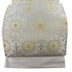 【3/1 0:00-3/2 9:59★10%OFFクーポン】【織楽浅野】西陣織特選創作袋帯 「花文」 ふくれ織 生成り×グレージュ二色